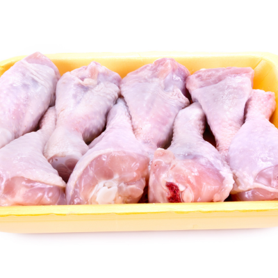 Opakowanie całej tacki na kurczaka w folii stretch.